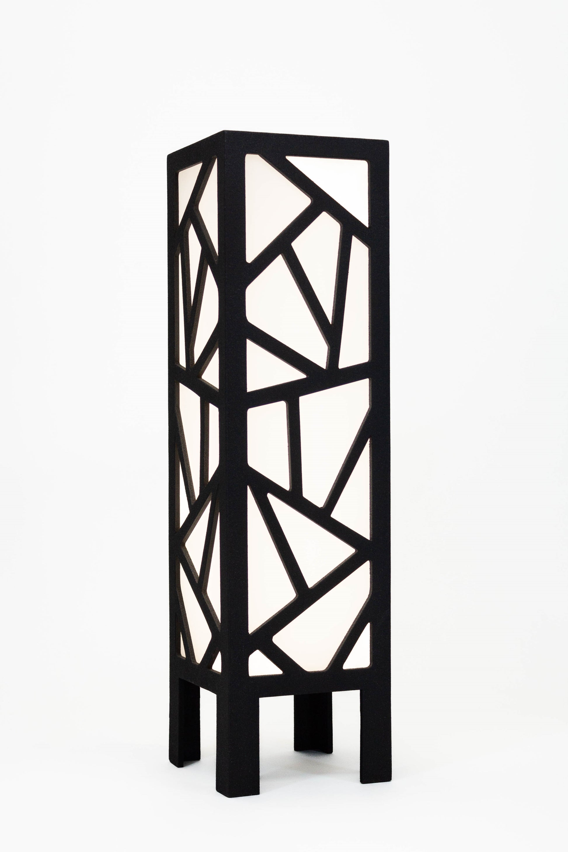 This Black Abstract Table Lamp features striking geometric shapes. Adding a touch of modern design to any room, this lamp provides both functional lighting and stylish decor. 2' x 6", LED with dimmable touch switch.