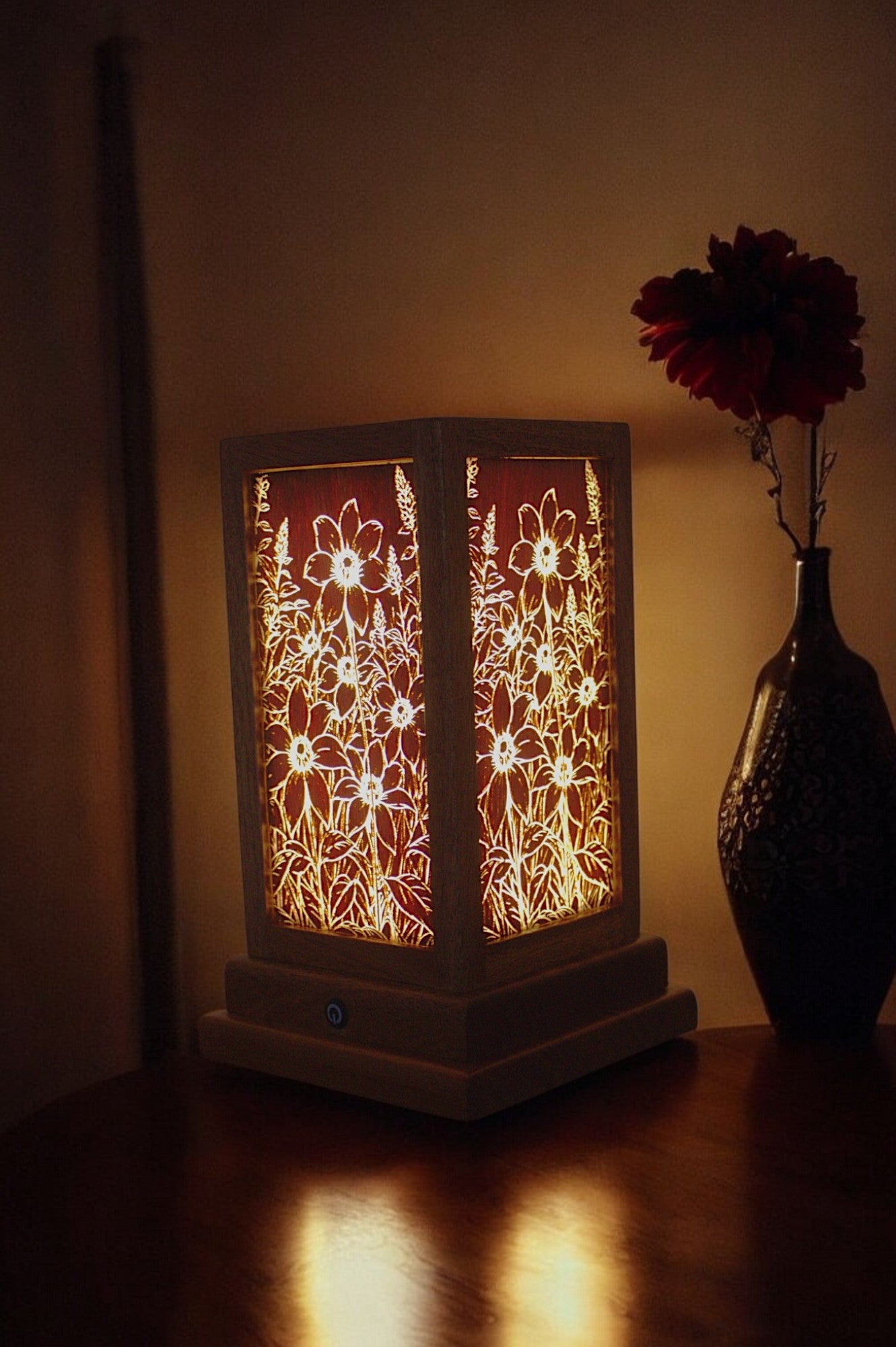Illuminate your space with a unique, stylish touch - our Flower Field Table Lamp. The acrylic and wood flower design adds a natural element to your decor.